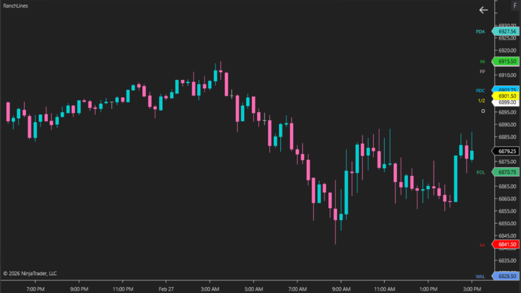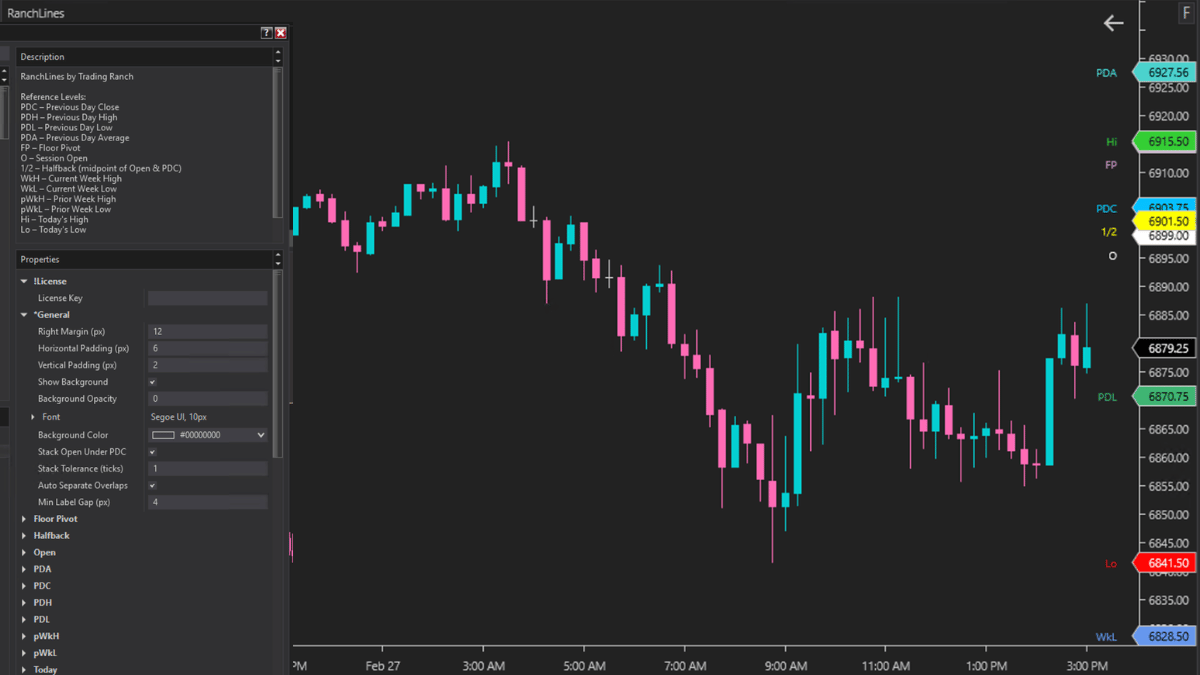 The Ranch Lines is a simple indicator that plots key levels color-coded on as price labels.