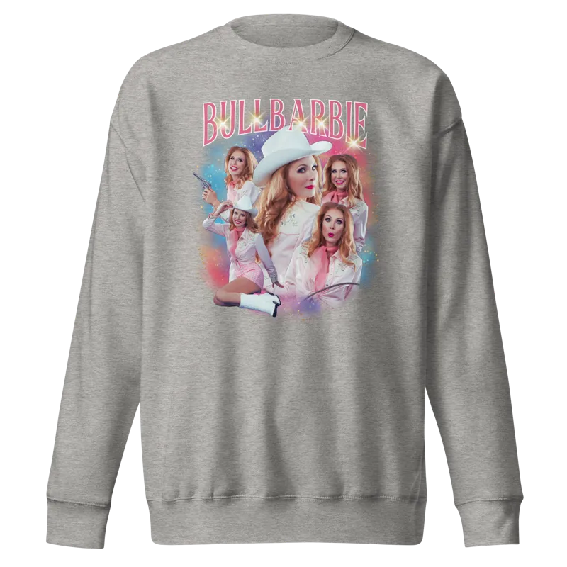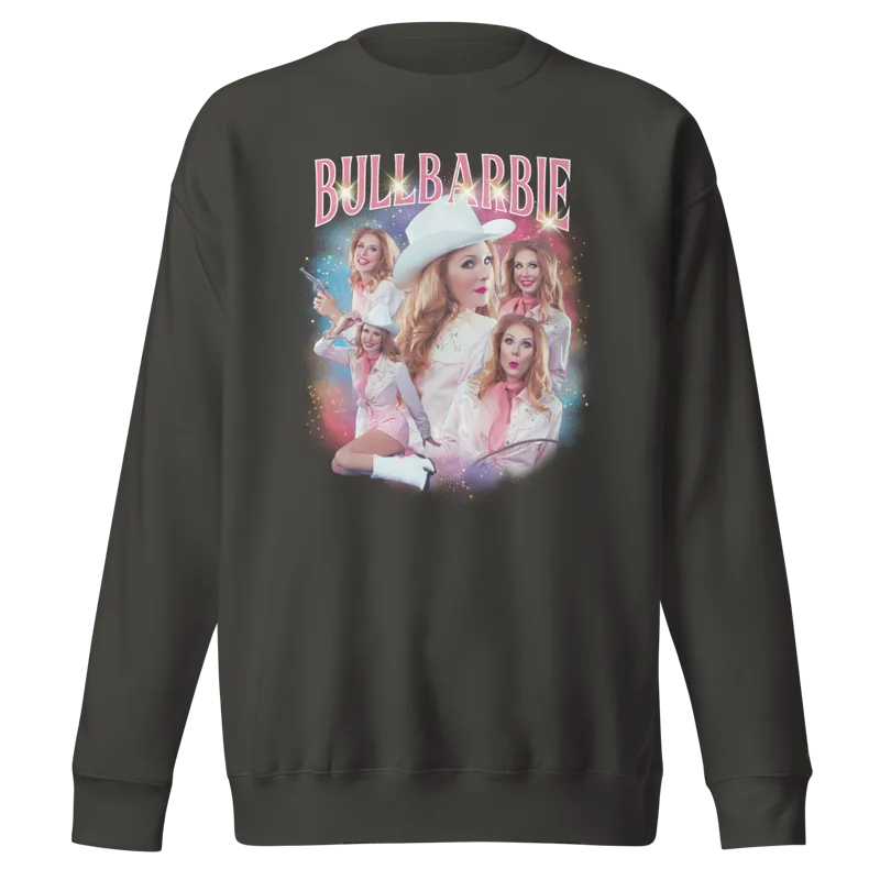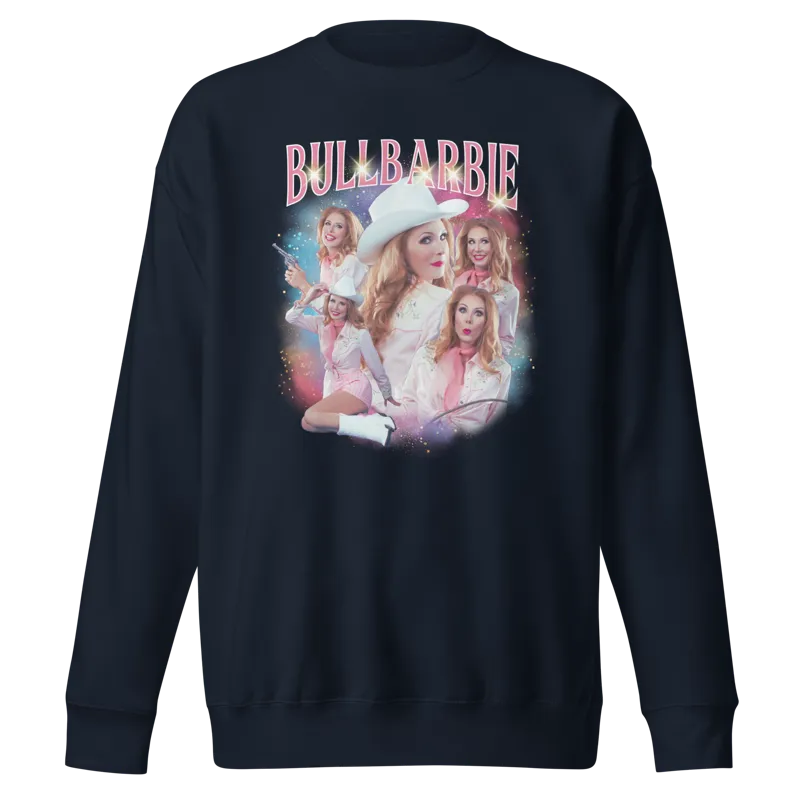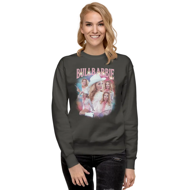 Classic, comfy cotton/poly blend sweatshirt with an over-the-top classic bootleg band concert merch, BullBarbie style!