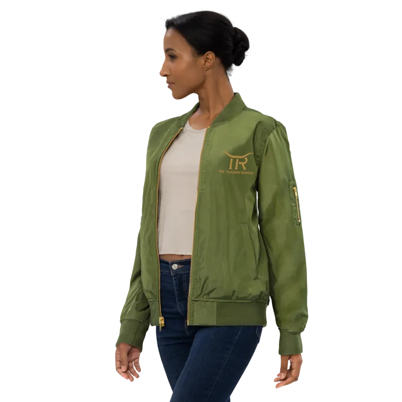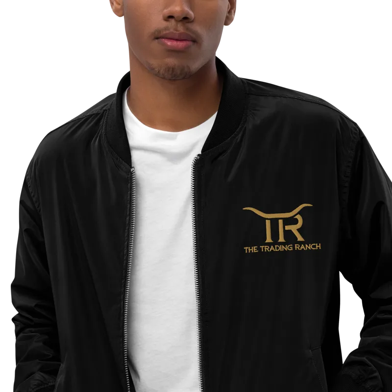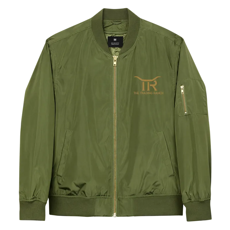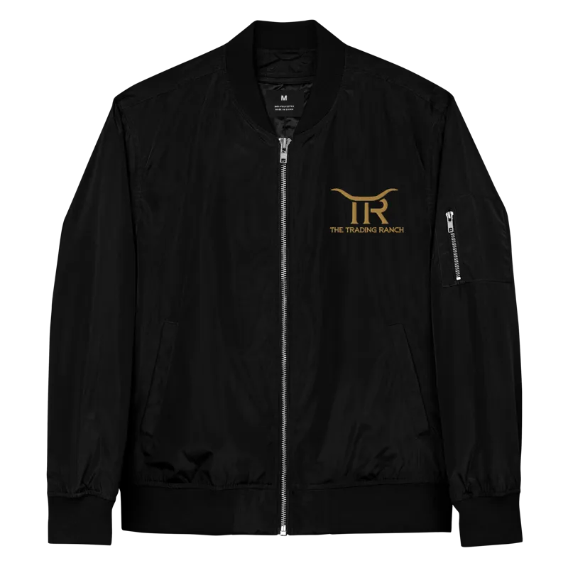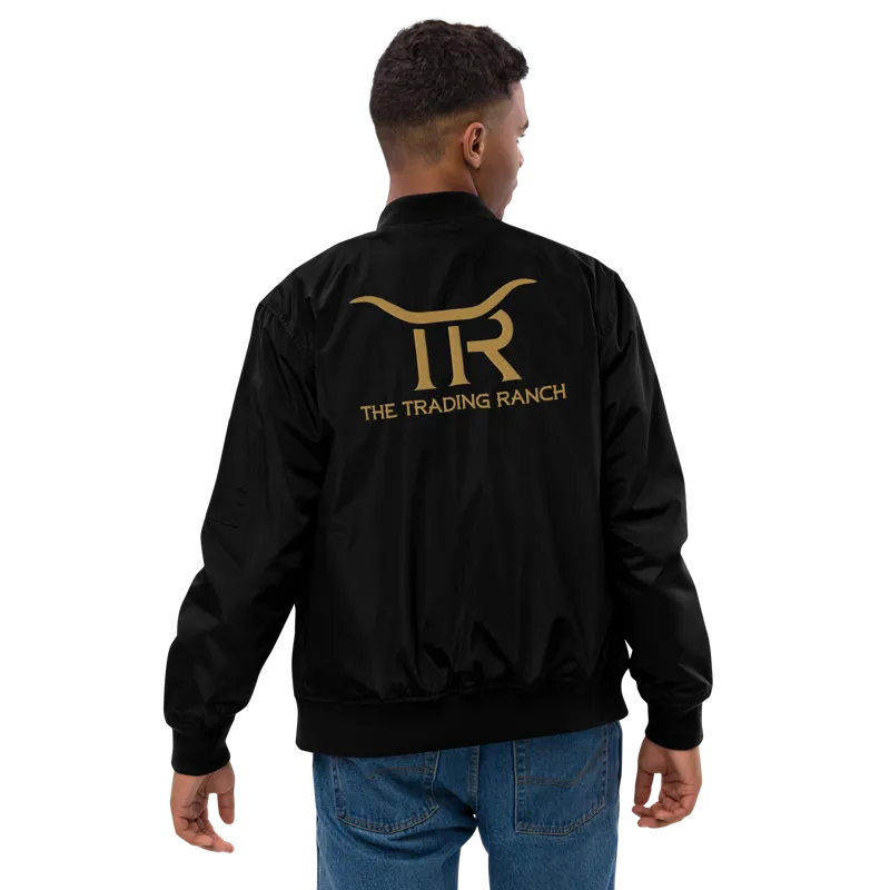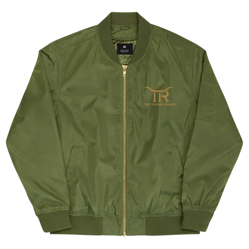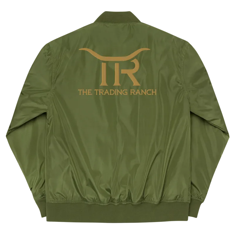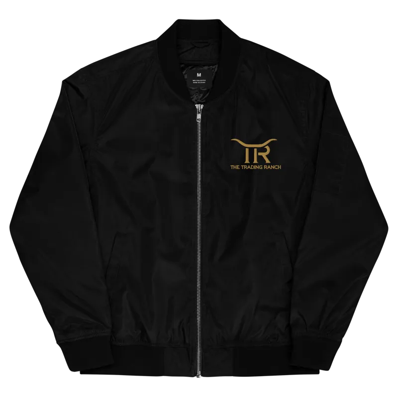 Classic bomber jacket embroidered with the Trading Ranch logo at the chest and on the back. Perfect for cool nights trading fireside under the stars!